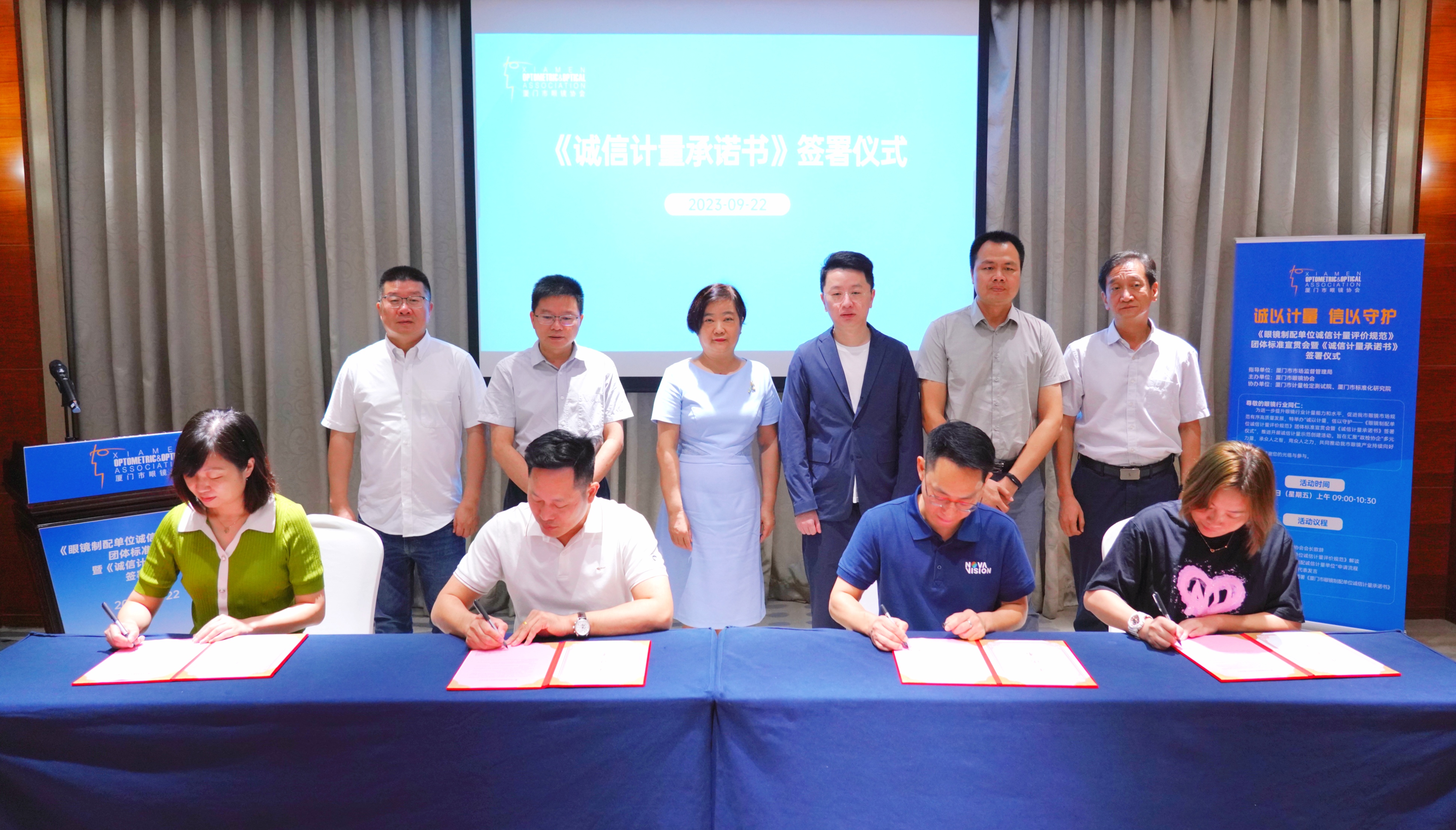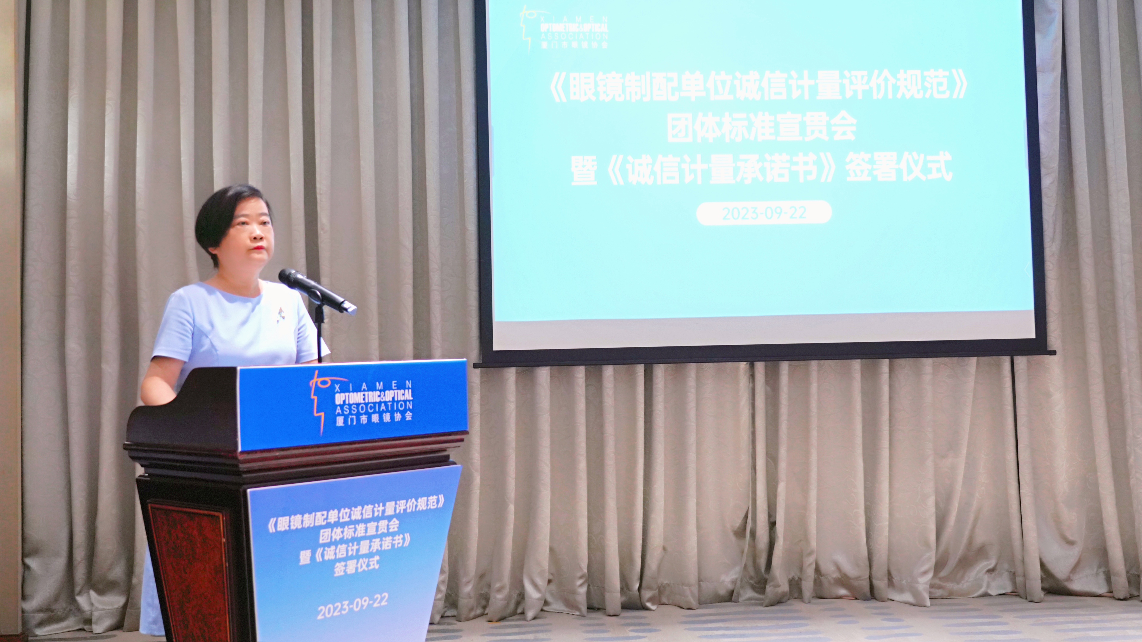 在廈門市市場監(jiān)管局積極推動下,福建省眼鏡制配誠信計量領域第一個團體標準《眼鏡制配單位誠信計量評價規(guī)范》順利出臺并實施。9月22日上午,廈門市眼鏡協(xié)會主辦,市計量院、市標研院協(xié)辦的《眼鏡制配單位誠信計量評價規(guī)范》團體標準宣貫會暨《誠信計量承諾書》簽署儀式活動順利舉行。曾琳副局長、市局計量處、標準化處、市計量院、市標研院負責人,眼鏡協(xié)會會長及各成員單位代表30余人參加。會上,市計量院鄭偉峰博士作團體標準解讀,眼鏡協(xié)會成員單位現(xiàn)場簽署《誠信計量承諾書》。曾琳副局長充分肯定眼鏡制配行業(yè)誠信計量團體標準發(fā)布實施的重要意義,并對今后的誠信計量團體標準實施工作提出兩點要求: